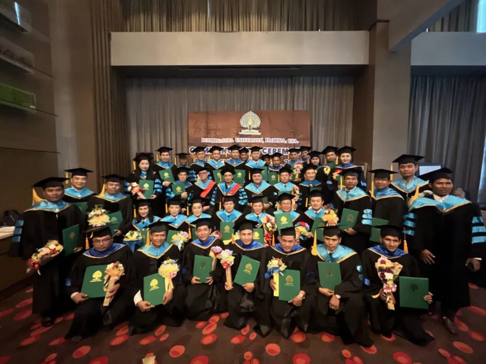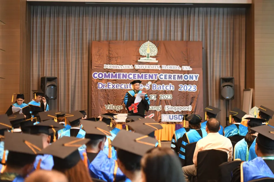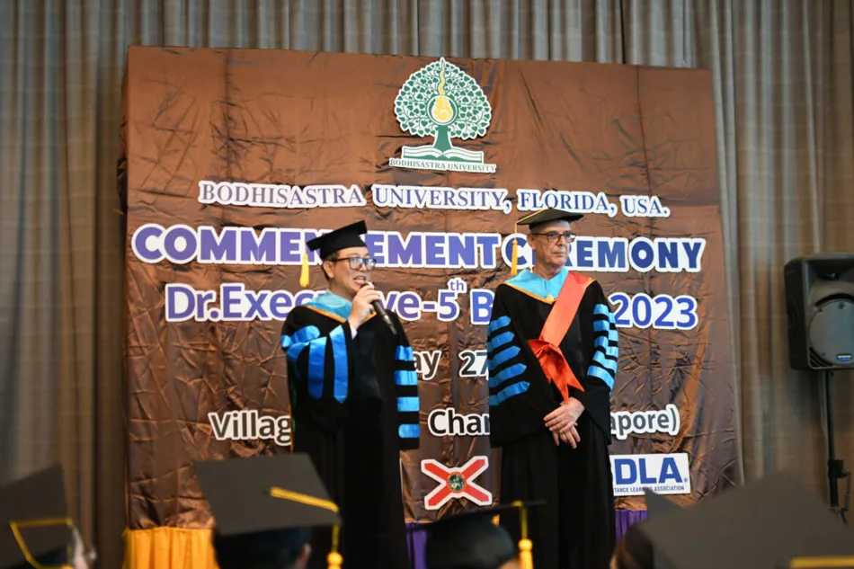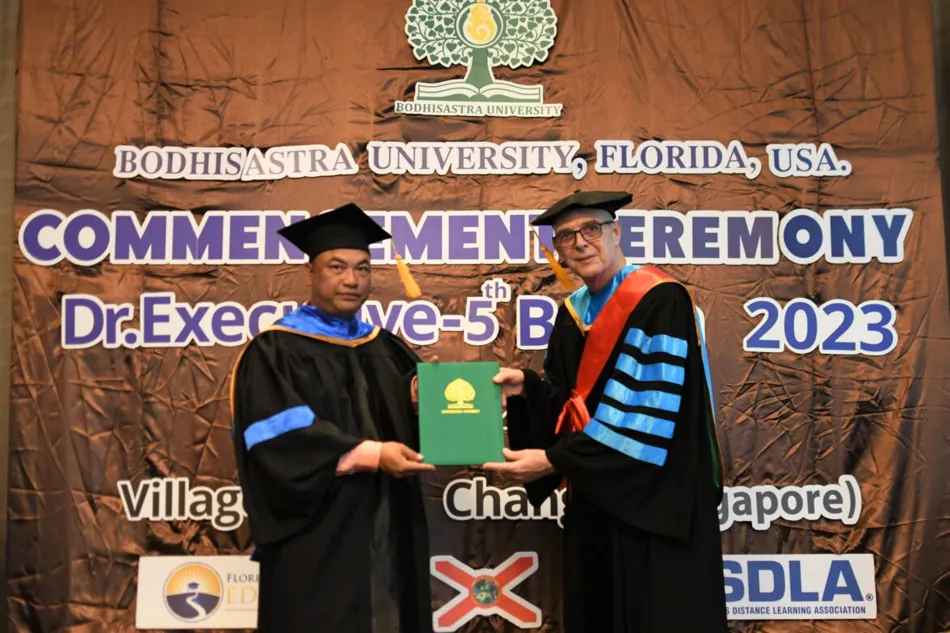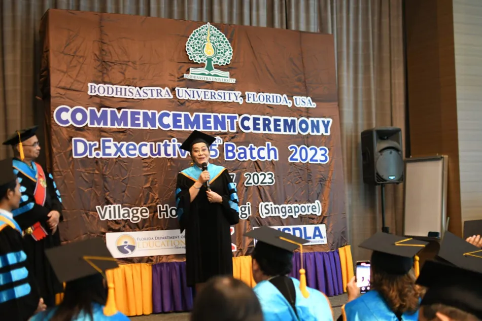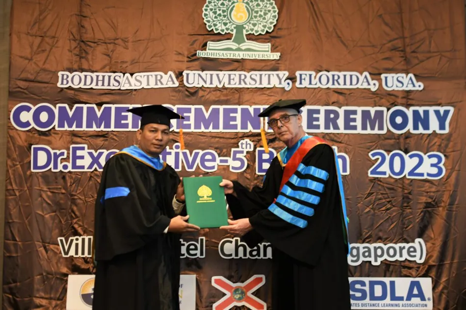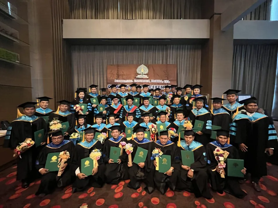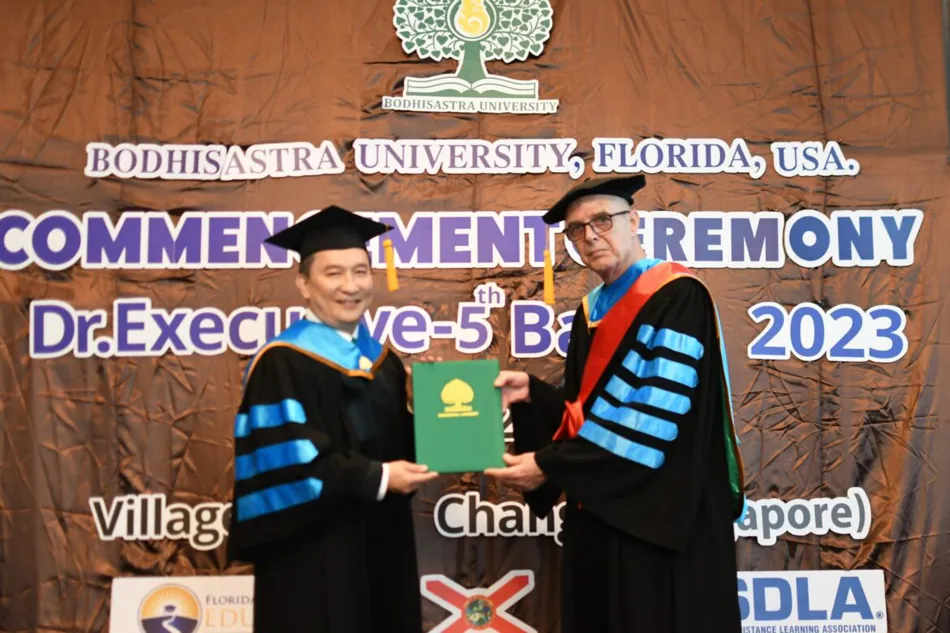 BODHISASTRA UNIVERSITY FLORIDA, UNITED STATES OF AMERICA. By Prof. Dr. Sak Prasandee, CEO and executives organized a graduation ceremony for graduates of doctoral, master’s and bachelor’s degrees at Chang Yi Village Hotel, Singapore. The graduates were from Thailand, Cambodia, America and Hong Kong.